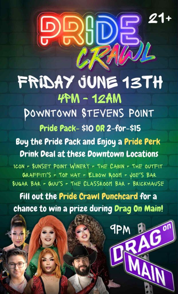 Kick off Stevens Point Pride weekend with Pride Crawl in Downtown Stevens Point!