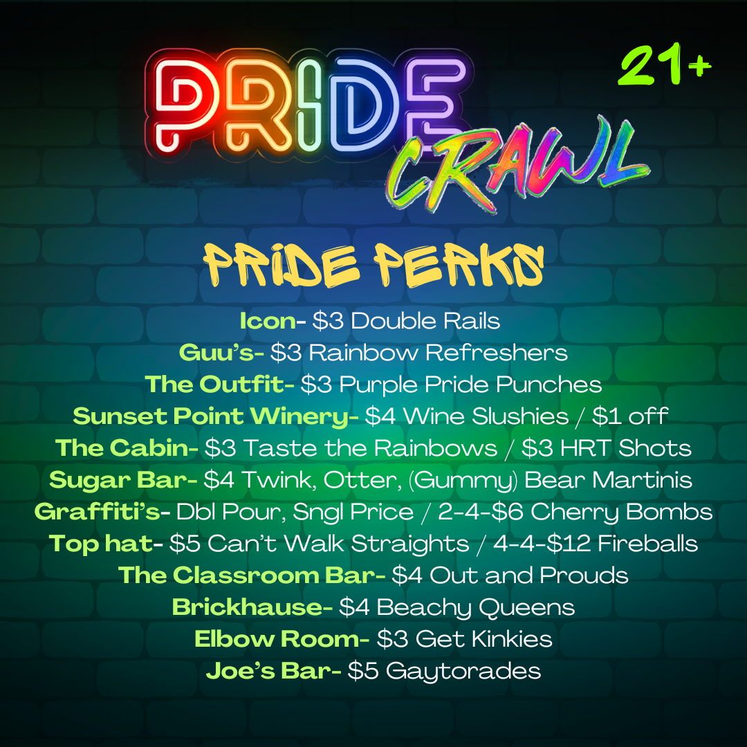 Pride Crawl Participation is limited to those 21+ You must bring a valid ID to participate.